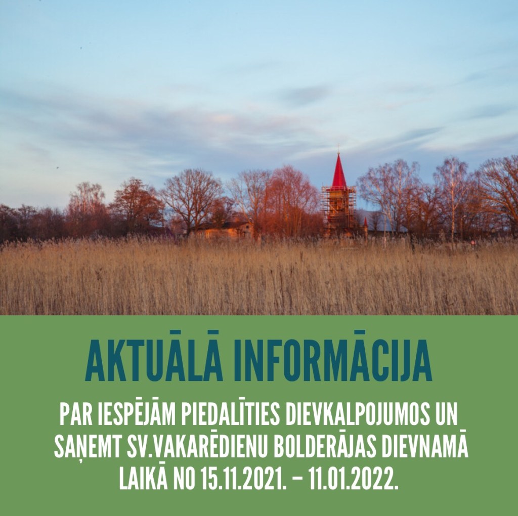 Par iespējām apmeklēt Bolderājas dievnamu, piedalīties dievkalpojumos un saņemt Sv.Vakarēdienu laikā no 15.11.2021. – 11.01.2022.