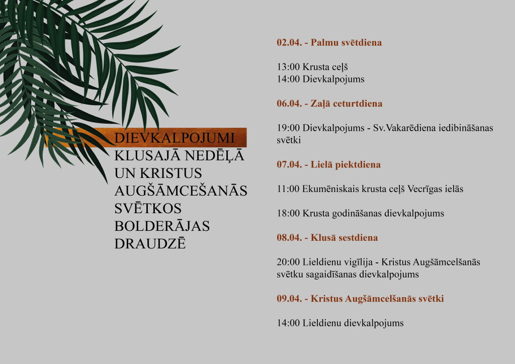 Uz tikšanos šajās tik īpašajās dienās mūsu dievnamā Bolderājā!